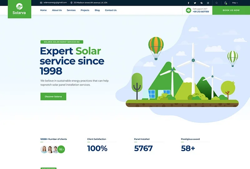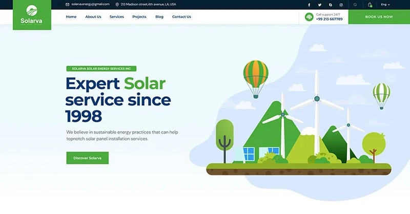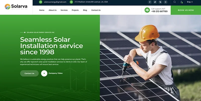 We are Solarva. It is designed as a modern & functional website for Solar Panel & Renewable Energy businesses.